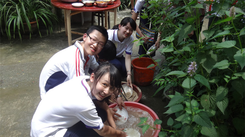 中午在安龙村体验了生态农家饭,使用米糠的环保洗碗法。