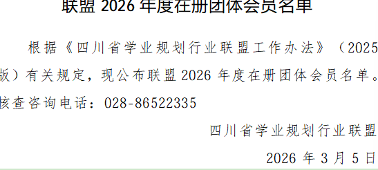 四川省学业规划行业联盟2026年度在册团体会员名单四川省学业规划行业联盟2026年度在册团体会员名单