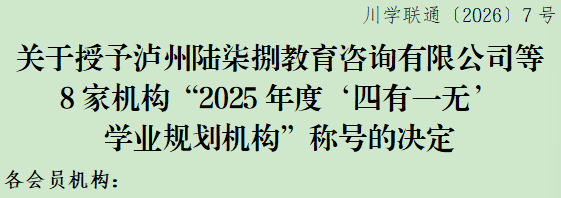 关于授予泸州陆柒捌教育咨询有限公司等8家机构“2025年度‘四有一无’ 学业规划机构”称号的决定关于授予泸州陆柒捌教育咨询有限公司等8家机构“2025年度‘四有一无’学业规划机构”称号的决定