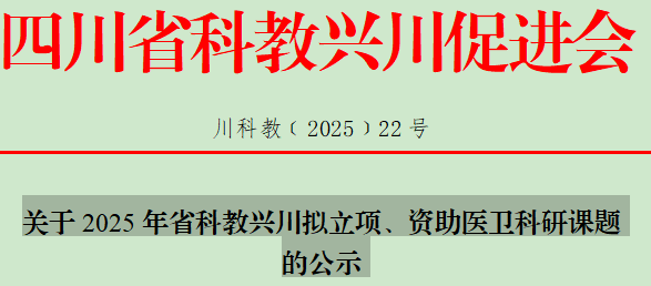 关于2025年省科教兴川拟立项、资助医卫科研课题 的公示关于2025年省科教兴川拟立项、资助医卫科研课题 的公示