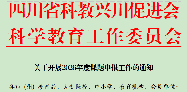 关于申报四川省科教兴川促进会2025年度医卫发展科研课题的通知为深入落实科教兴院战略,发展新质生产力,调动我省医疗卫生人员的科研积极性,推动医学学科发展,支持人才培养和学科建设,提高委员单位的科研能力和科研水平,推动医院高质量发展。