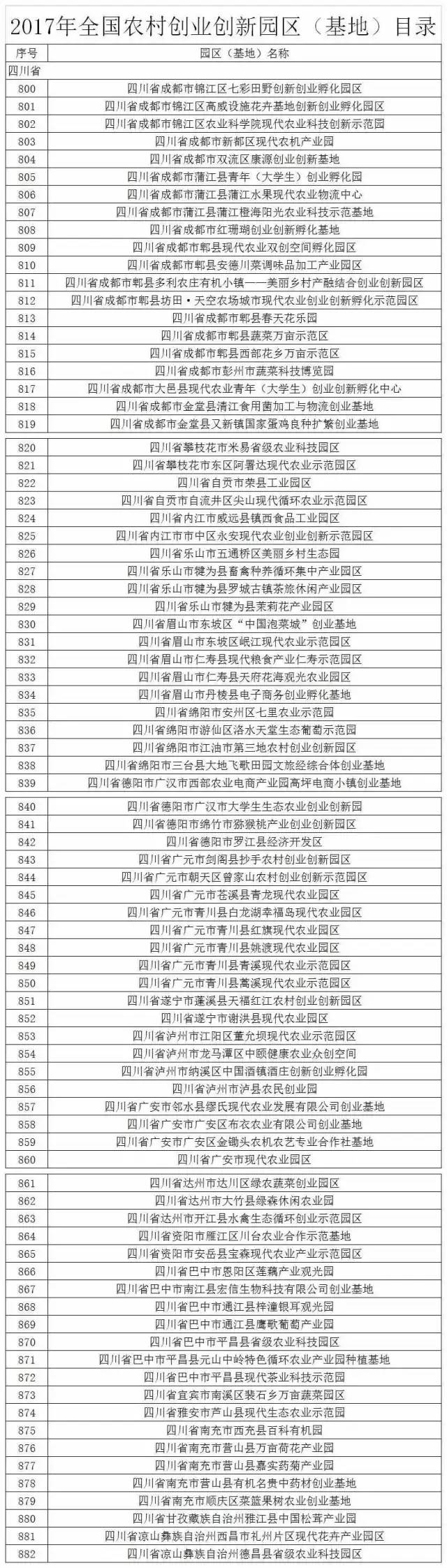 在这份目录中,四川省成都市锦江区七彩田野创新创业孵化园区、四川省眉山市东坡区“中国泡菜城”创业基地等83个园区(基地)入围,占全国总数的7.6%。
