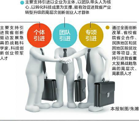 按照省委、省政府对人才工作的新部署新要求,新一轮“千人计划”引进从以个体人才“一枝独秀”转变为个体引进、团队引进、专项引进“三轮驱动”。至此,省“千人计划”以三个类别10个项目为主的引才体系基本成型。