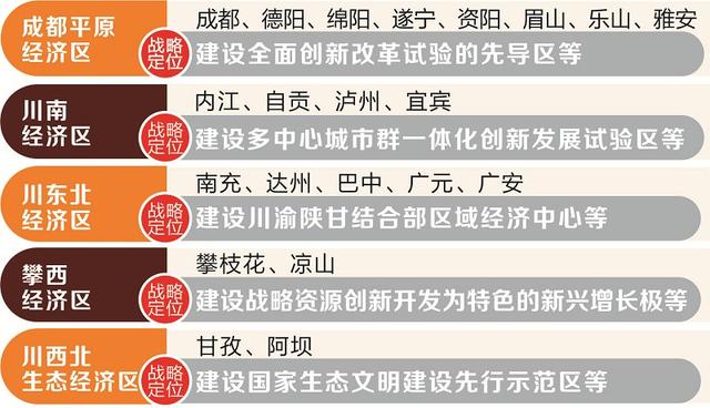 根据规划,成都平原经济区定位为全面创新改革试验的先导区、现代高端产业的集聚区、西部内陆开放的前沿区、区域协同发展的样板区以及全面小康社会的先行区。具体在发展规划上,未来的成都平原经济区,将形成“一圈两带两区”的空间发展格局。